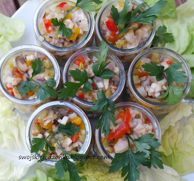 Śledź podany w inny sposób-tatar ze śledzia z marynowanymi grzybkami i papryką-czemu nie-pycha i prezentuje się bardzo ciekawie,super propozycja na zbliżającą się Wigilię,sylwestra i nie tylko-polecam